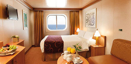 Οι εξωτερικές καμπίνες είναι περίπου 17τμ και διαθέτουν 2 μονά κρεβάτια ή ένα διπλό, και 3ο/4ο κρεβάτι κουκέτα ή καναπέ κρεβάτι, παράθυρο, κλιματισμό, Τηλεόραση, πιστολάκι για τα μαλλιά και χρηματοκιβώτιο.