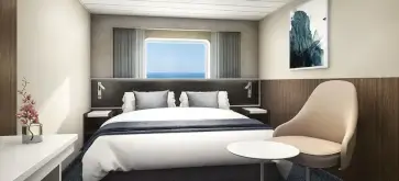 Η εξωτερική καμπίνα κατηγορίας Sailaway, σας διασφαλίζει εξωτερική καμπίνα με δυνατότητα καλύτερης καμπίνας. Η θέα μπορεί να είναι περιορισμένη, μερικώς περιορισμένη, παράθυρο με φινιστρίνι ή μεγάλο παράθυρο Έχει χωρητικότητα 15τ.μ. και μπορεί να φιλοξενήσει έως και 3 άτομα.